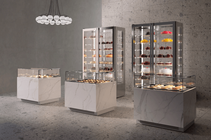 Our vertical solutions embody flawless design, flexibility, and versatility, catering to diverse venue requirements with ease. Whether it’s fresh pastry, frozen pastry, pralines, gastronomy products, charcuterie, or wines and champagne, our vertical cabinets are ideal for showcasing a wide range of products. Offering positive, low, or hot temperature ranges and available in various lengths and depths, these cabinets are designed to meet the unique needs of any commercial kitchen.